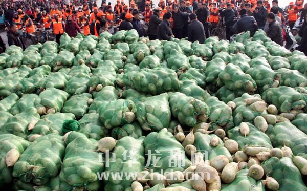 當天上午,淮陽縣太昊陵廣場人頭攢動,1000余名貧困家庭代表早早地來到現(xiàn)場等候。9時許,“愛心蘿卜”開始免費發(fā)放。僅一上午時間,20萬斤蘿卜就被認領一空。