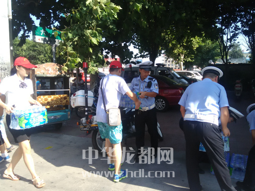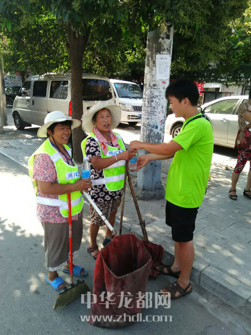 ????又是一年最熱時,在馬路上工作的交警和環(huán)衛(wèi)工可謂備受煎熬。有感于交警和環(huán)衛(wèi)工的辛苦,7月29日,愛心學(xué)校和公益機(jī)構(gòu)以送瓶裝礦泉水的方式,向他們表達(dá)了自己的敬意。晚報記者 郭坤 張燕 攝