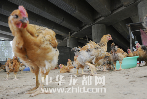 與大慶路橋下相比,周口大道橋下更有“經(jīng)濟味”,幾千只雞在橋下撒歡地跑著、追逐著、鳴唱著……好一番生活氣息。再等一段時間,這些雞就能走上人們的餐桌換成人民幣。
