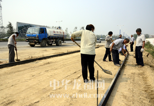 ????昨日上午,幾名施工人員正在文昌大道東段鋪設輔路。文昌大道是市區(qū)一條東西向主要交通干道,為城市東西擴展軸,具有功能和景觀上的復雜性和多樣性。