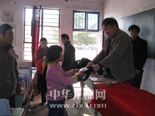 2006年,張偉為留守兒童發(fā)放慰問(wèn)品。(資料圖)