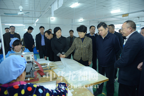 ????省委常委、宣傳部長趙素萍一行在市領(lǐng)導(dǎo)徐光等人的陪同下,到鄲城縣企業(yè)調(diào)研。記者 王亞輝 攝