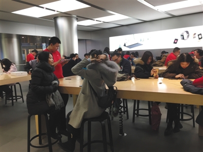 ????12月11日,蘋果王府井直營店售后服務(wù)等待區(qū)。 實(shí)習(xí)生 孫亞慧 攝