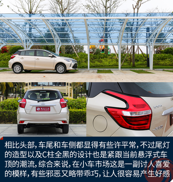 相比頭部,車尾和車側都顯得有些許平常,不過尾燈的造型以及C柱全黑的設計也是緊跟當前懸浮式車頂?shù)某绷?,綜合來說,在小車市場這是一副討人喜愛的模樣,有些邪惡卻又略帶乖巧,讓人很容易產生好感。
