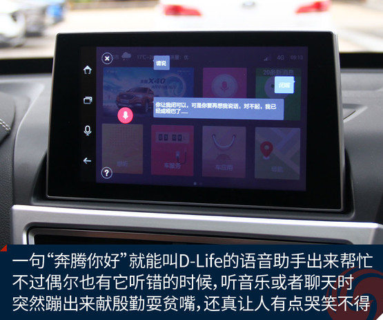 不過(guò)跟奔騰X40接觸兩天之后,會(huì)發(fā)現(xiàn)它大可不必在對(duì)手林立的市場(chǎng)中血拼顏值,靠實(shí)力不俗的獨(dú)門絕技一樣能夠輕松獲得一席之地。既然面向年輕用戶,豐富的車載娛樂(lè)系統(tǒng)很關(guān)鍵。大屏幕、手機(jī)互聯(lián)等等似乎已經(jīng)是這類車的標(biāo)配。奔騰X40更進(jìn)一步,所搭載的D-Life系統(tǒng)讓我們看到了它引領(lǐng)潮流的勁頭。
