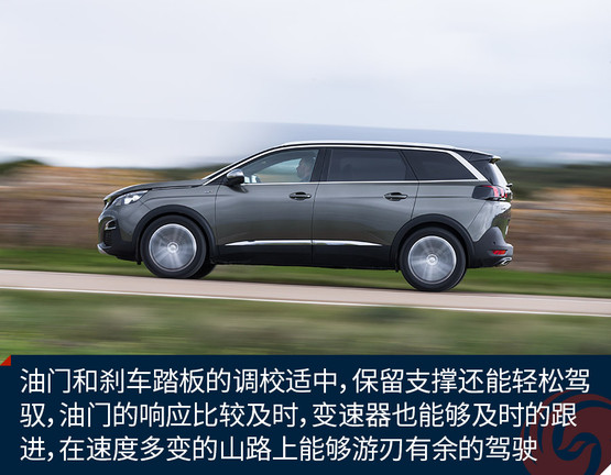油門和剎車踏板的調(diào)校也如是,踏板腳感適中,保留支撐還能輕松駕馭,并不像多數(shù)歐系車那樣沉重。油門的響應比較及時,變速器也能夠及時的跟進,在速度多變的山路上能夠游刃有余的駕駛。唯一的問題是低功率的1.6T在動力上沒有突出的表現(xiàn),尤其在上坡時,加速會稍感吃力,但是想到這事一款家用SUV,這也就不是問題了。而且標致5008在國內(nèi)的主力車型將會是1.8T版本,動力還會再上一個臺階。