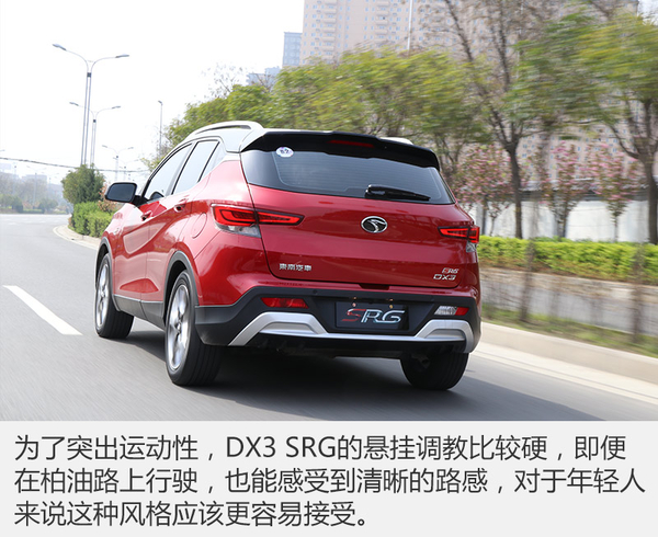 東南DX3 SRG很明顯是為85后年輕群體打造的一款車,雖然它的最終用戶不一定是年輕人,但不可否認(rèn)東南DX3 SRG是同級(jí)中顏值頗高的一員,無論從哪個(gè)角度都足夠讓人驚艷;試駕活動(dòng)中全新的動(dòng)力組合非常出色,尤其是底盤調(diào)教給我留下了深刻的印象,這對(duì)于年輕消費(fèi)者來說無疑是個(gè)利好的期待,作為10萬元級(jí)別SUV,DX3 SRG有很強(qiáng)的實(shí)力與競品爭奪市場。(圖/文 張嘉文)