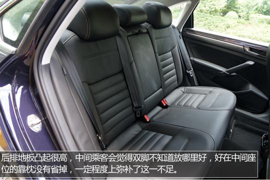????????全新帕薩特的內(nèi)部乘坐空間還是挺大的,美中不足的是后排地板的凸起比較高,好在后排中間座位配有頭枕,而且座椅整體設計的比較寬大,乘坐舒適性還是有保證的。