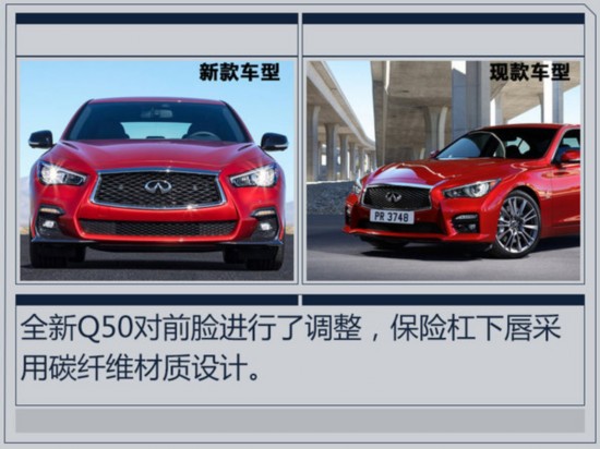 ??? Q50是英菲尼迪旗下的中型轎車,全新車型已在今年3月的日內(nèi)瓦車展上首發(fā)亮相。網(wǎng)上車市從美國汽車媒體motor1獲得一組2018款英菲尼迪車型圖片。新車對外觀進(jìn)行了調(diào)整,并增搭了3.6L V6混動系統(tǒng)。