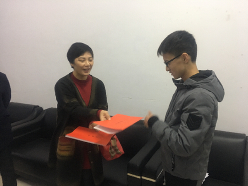 16日下午,樊女士來到周口市第一高級中學,把一封感謝信送給涂航旗,表達謝意。