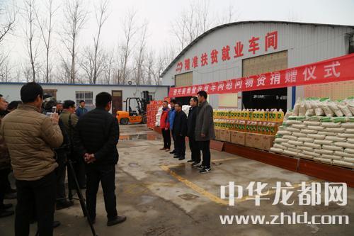 中華龍都網(wǎng)訊 (周口報(bào)業(yè)全媒體記者張勁松 通訊員 蘇千) 新年送溫暖,扶貧獻(xiàn)愛心。1月28日下午,東新區(qū)許灣鄉(xiāng)創(chuàng)興裝飾公司暨扶貧車間慰問貧困戶捐贈儀式在許灣鄉(xiāng)精準(zhǔn)扶貧就業(yè)車間隆重舉行。當(dāng)日,該公司為許灣鄉(xiāng)貧困戶捐贈了價(jià)值6萬余元的米、面、油等扶貧物資。許灣鄉(xiāng)黨委書記李培華,東新區(qū)紀(jì)檢監(jiān)察室副主任、許灣鄉(xiāng)于莊行政村第一書記高賓及企業(yè)相關(guān)負(fù)責(zé)人出席儀式。