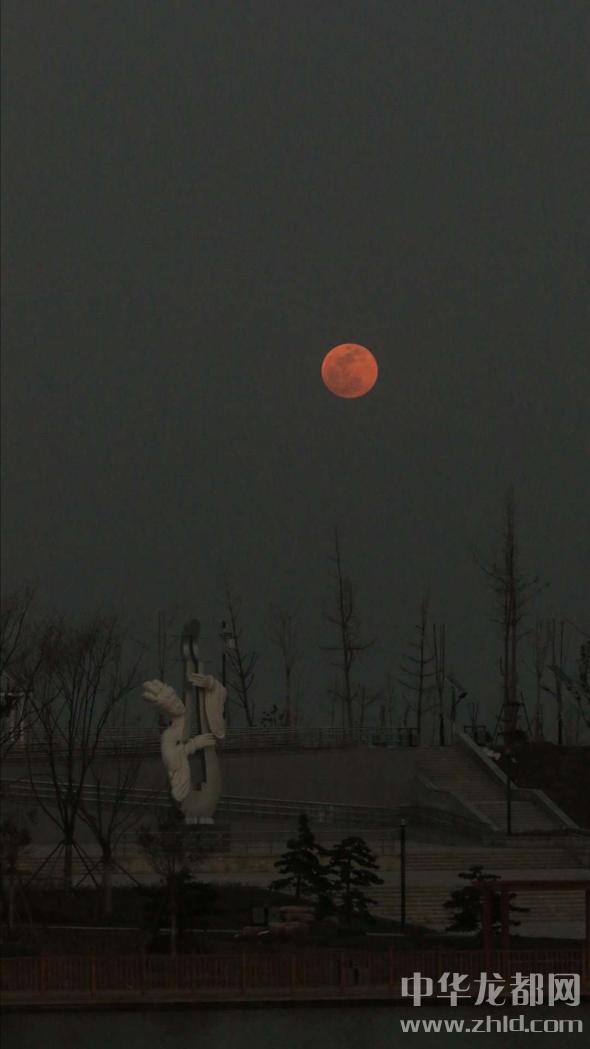 這是1月31日在北京宣武門地區(qū)拍攝的月亮升起時的場景。當日是丁酉雞年最后一個滿月夜,天空中上演月全食大戲。我國大部分地區(qū)都能欣賞到一輪“紅月亮”高懸夜空的迷人景象。新華社記者 邢廣利 攝