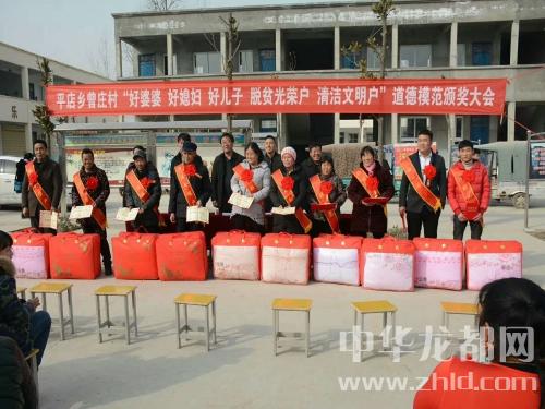 中華龍都網(wǎng)訊(周口報業(yè)全媒體記者 付永奇 趙永昌 文/圖))2月10日下午,商水縣平店鄉(xiāng)曾莊小學(xué)操場內(nèi),人頭攢動、熱鬧非凡,村里評選出來的10位好婆婆、好媳婦、好兒子、清潔文明戶、脫貧光榮戶等“五好”群眾代表身披綬帶、胸戴紅花,臉上都洋溢著幸福的喜悅;一些民間文藝團體分別助興表演了挑花籃、扇子舞、廣場舞等喜慶的節(jié)目,把現(xiàn)場氣氛烘托得異常隆重?zé)崃?。“為弘揚社會公德、家庭美德,提升群眾素質(zhì)和文明程度,春節(jié)來臨之際我們召開‘五好’表彰大會,下面有請鄉(xiāng)黨委副書記、鄉(xiāng)長徐汝濤給大家講話......”隨著主持人、鄉(xiāng)紀委書記劉新光的開場白,臺下響起了一陣熱烈的掌聲?!伴_展好婆婆、好媳婦、好兒子、清潔文明戶、脫貧光榮戶等模范家庭人物評選是我鄉(xiāng)精神文明建設(shè)工作的一項重大舉措,也是脫貧攻堅、農(nóng)村人居環(huán)境整治、文明鄉(xiāng)風(fēng)提升的部分內(nèi)容,更是弘揚孝親敬老、勤勞致富、講究衛(wèi)生等優(yōu)良傳統(tǒng)的需要。全鄉(xiāng)各村都要通過召開評選表彰大會,引導(dǎo)廣大人民群眾學(xué)先進、爭先進,為文明和諧平店建設(shè)做出更大的貢獻......”徐汝濤提出殷切的希望。曾莊行政村“兩委”成員、駐村工作隊、第一書記及部分群眾200余人參加了會議。與會領(lǐng)導(dǎo)為此次層層推薦評選出的好婆婆、好媳婦、好兒子、清潔文明戶、脫貧光榮戶頒發(fā)了榮譽證書和獎品。據(jù)村支部書記曾紀靈介紹,這些“五好”模范都有感人的故事,或是講究衛(wèi)生、勤儉持家,孝老敬親、患難與共;或是鄰里互助、脫貧致富;他們用實際行動證明了自己對文明風(fēng)尚的價值追求,在生活中書寫了一個個接地氣的好故事,為廣大家庭樹立了好榜樣。受表彰的好婆婆胡秀英說:“把媳婦當閨女,啥時候也不會吵架生氣......”清潔文明戶朱國申說:“農(nóng)村環(huán)境臟亂差,咱要帶頭改變它......”脫貧光榮戶劉前進說:“國家扶貧政策好,不如早點摘掉貧困帽!”