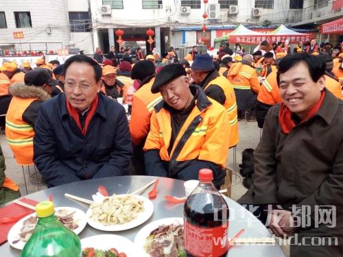 中華龍都網訊(周口報業(yè)全媒體記者 馬治衛(wèi))2月14日上午,太康縣“溫暖環(huán)衛(wèi)工團團圓圓過大年”大型公益活動隆重舉行。市政府副市長、市黨外知識分子聯(lián)誼會會長張廣東應邀出席并與環(huán)衛(wèi)工一起共進午餐。