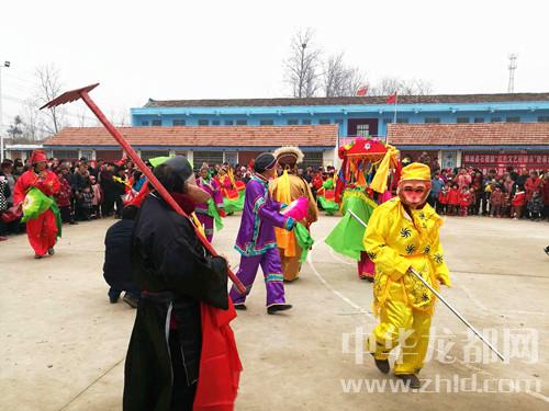 “前幾年農(nóng)閑真是把人閑得心慌,每天都是吃飽等餓、仰著臉上曬日頭?,F(xiàn)在黨的政策好,幫俺提起了精氣神兒,俺村20多個老頭老太太組成一支竹馬旱船腰鼓花棍廣場舞隊,年輕的時候會一點,現(xiàn)在見演出就來學(xué)一點,上一次李全林縣長晚上住俺這里幫扶,在俺這里看演出,說俺也成專業(yè)隊了?!边@個群眾隊的隊長是78歲的羅有德、扮相是孫悟空,旱船里的“花媳婦”是80歲的郭蘭英。連續(xù)15分鐘的蹦跳表演之后摘掉面具接受記者采訪時,群眾們都不敢相信他們這么大年齡還跳得這么起勁兒。“你們的演出隊名字太長了”記者說,“哈哈哈哈,俺老頭老太太都是‘三板斧’,也不會起名字,會的這幾招兒都寫到名字上了?!绷_有德、郭蘭英大笑著回答。