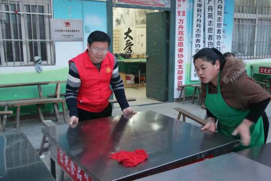 中華龍都網(wǎng)訊(周口報業(yè)全媒體記者 馬治衛(wèi) 通訊員 衡霞光)為弘揚志愿者精神,3月24日,縣直機(jī)關(guān)工委以張玉潔書記為首的黨員志愿服務(wù)隊早早來到愛心早餐現(xiàn)場,他們擺放桌凳,盛菜、盛湯,忙的不亦樂乎,6點準(zhǔn)時開飯,張玉潔帶頭把飯菜端到環(huán)衛(wèi)工人面前,作為黨員志愿者,她身先士卒、帥先垂范、受到環(huán)衛(wèi)工人的一致稱贊。