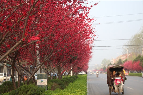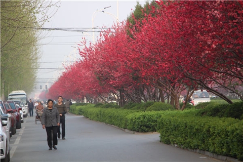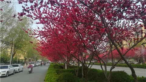 楊樹(shù)、垂柳、法桐,這是常見(jiàn)的綠化樹(shù),可是你見(jiàn)過(guò)整條道路用桃樹(shù)做綠化的嗎?在周口市建設(shè)大道西段,長(zhǎng)達(dá)1公里的主干道兩側(cè)種滿(mǎn)桃樹(shù)?,F(xiàn)在正值陽(yáng)春三月桃花盛開(kāi),整條道路成了一片花的海洋,儼然是鬧市區(qū)里的世外桃源。