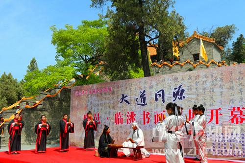 中華龍都網(wǎng)訊(周口報(bào)業(yè)全媒體記者 李瑞才/文 通訊員 陳興有/圖)5月4日上午,“大道同源”——鹿邑·臨洮書畫聯(lián)展活動在鹿邑縣明道宮景區(qū)開幕。此次活動由甘肅省臨洮縣人民政府和鹿邑縣人民政府共同舉辦,精選兩地137位書畫藝術(shù)家140余幅作品在鹿邑展出。鹿邑縣領(lǐng)導(dǎo)武衛(wèi)東、劉銀、宋克言、王玉超和臨洮縣委常委、宣傳部長郭志萍等出席開幕式。