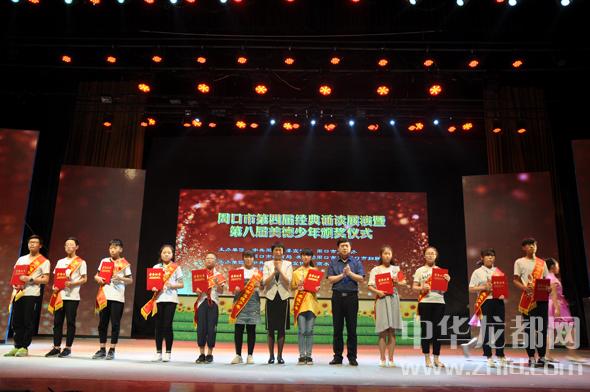 今年,經(jīng)過組織申報、層層推薦、審核公示、投票評選等程序,“市美德少年評委會”授予商水縣湯莊一中的王一帆、殷夢丹,周口實驗小學(xué)的盧若沖,太康縣城關(guān)中學(xué)的李思墨等11名同學(xué)“周口市美德少年”榮譽稱號;授予王博、趙子怡等10名同學(xué)“周口市美德少年”提名榮譽稱號。在熱烈的掌聲中,這些身著佩帶的美德少年走向舞臺,與會領(lǐng)導(dǎo)為他們頒發(fā)獎杯和證書??粗峙酹劚拿赖律倌辏_下的小學(xué)生宋佳佳悄悄告訴身邊的媽媽:“這些哥哥姐姐有的舍己救人,有的助人為樂,有的尊老愛幼,優(yōu)秀的品質(zhì)值得我們學(xué)習(xí),以后我也要從小事做起,從點滴做起,爭取成為下一屆的美德少年?!?/p>