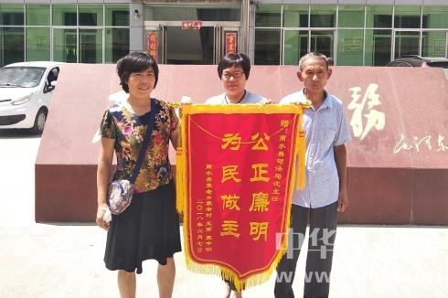 中華龍都網(wǎng)訊(周口報業(yè)全媒體記者 付永奇 通訊員 王飛) 6月18日,商水縣袁老鄉(xiāng)袁 老村的王某、袁某二人專程來到縣法律援助中心,將一面印有“公正廉明 為民做主”的錦旗 送到工作人員手中,以表達對縣法律援助中心和援助律師的感激之情。