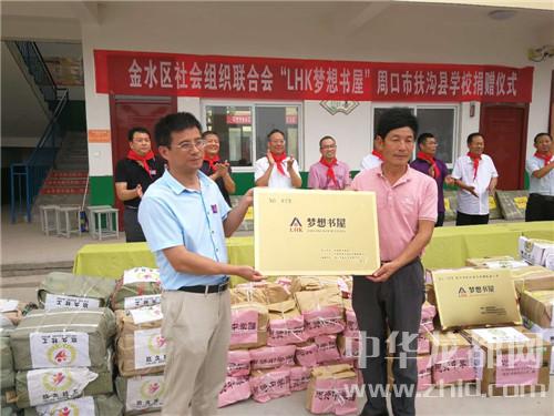 中華龍都網(wǎng)訊(周口報(bào)業(yè)全媒體記者 謝永靜)如火的驕陽點(diǎn)亮愛的夢想。6月28日上午,鄭州市金水區(qū)社會(huì)組織聯(lián)合會(huì)及8家會(huì)員單位“LHK夢想書屋”扶溝縣捐贈(zèng)儀式在扶亭街道高樓小學(xué)隆重舉行。他們?yōu)榉鰷峡h6所農(nóng)村學(xué)校送來1.2萬冊圖書、10臺(tái)教學(xué)影像設(shè)備和180套學(xué)習(xí)用品,總價(jià)值30多萬元。
