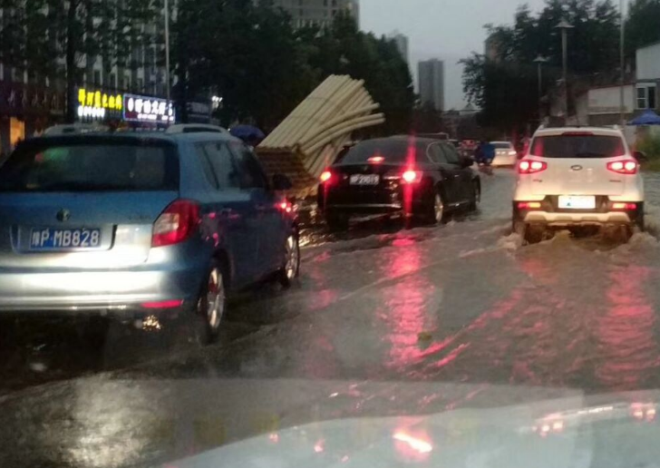 記者在周口市東新區(qū)觀察到,降水從26日下午4點多開始,一直持續(xù)到夜間,其間伴有雷電和大風。26日傍晚6時許,記者在周口市文昌大道看到,積水嚴重的地方已經(jīng)淹沒了自行車大半個輪胎,一些行人涉水而行,車輛則猶如沖浪前進。