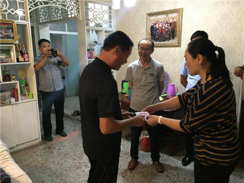 慰問中,張杰與22名參戰(zhàn)老兵、現(xiàn)役軍人家屬一起親切交流,詳細(xì)詢問他們的家庭和當(dāng)前生活情況,并給他們送上慰問金和節(jié)日的問候。在李莊社區(qū),張杰來到現(xiàn)役軍人李佳威家中看望光榮軍屬,向他們致以節(jié)日問候,對他們支持國防事業(yè)表示感謝。在王寨社區(qū)參戰(zhàn)老兵王超申的家中,張杰說,參戰(zhàn)老兵是國家的寶貴財(cái)富,沒有他們當(dāng)年的英勇奮戰(zhàn)就沒有我們現(xiàn)在幸福美滿的生活。各相關(guān)部門要特別尊重、特別關(guān)心、特別關(guān)愛和特別照顧參戰(zhàn)老兵,在全社會營造擁軍愛屬的良好氛圍。