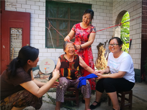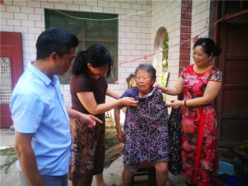 7月29日上午,周口市太康縣五里口鄉(xiāng)桂李行政村82歲老人石鳳蘭格外高興:該縣工商局翟保紅等3名駐村女扶貧干部相約來到她家里看望,并為她買來新衣服等?!皼]想到老了老了,又多了3個(gè)好閨女,這日子真是越過越好啊!”石鳳蘭老人高興地說。