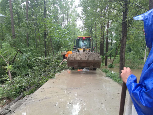 8月19日早7點(diǎn),陳留張駐村工作隊(duì)長(zhǎng)李成功、村副主任張建靈發(fā)現(xiàn)險(xiǎn)情后,便開始緊急會(huì)商,提出科學(xué)搶修方案。最后確定,調(diào)用本村的鏟車,利用本村商砼站的石料,組織本村的村民,迅速趕赴事發(fā)地點(diǎn)開展搶修工作。