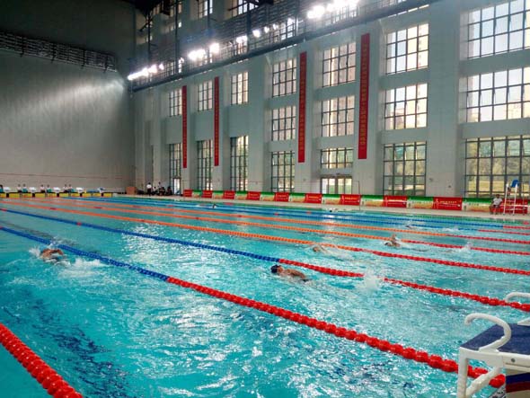 據(jù)了解,市游泳館占地面積4.4萬平方米,總建筑面積24398.69平方米,地上建筑面積20846.08平方米,地下建筑面積3552.61平方米,地上三層、地下一層,可容納觀眾1200人。市游泳館內(nèi)共有兩個大的泳池,一個比賽用,長50米、寬25米,規(guī)格達到奧運會游泳比賽泳池標準,比賽時水深將達到2米;另外一個練習用,供參賽選手熱身,水深1.2米。