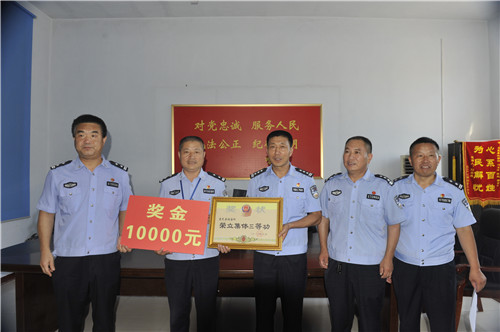 殷殷勉勵鼓士氣,濃濃關(guān)愛暖警心。8月22日,鹿邑縣公安局政委任金瑞帶領(lǐng)政工部門負責人深入基層一線,為榮立集體三等功的鹿邑縣拘留所和榮獲個人嘉獎的任集派出所指導員姚坤送去獎?wù)?、證書和獎金。