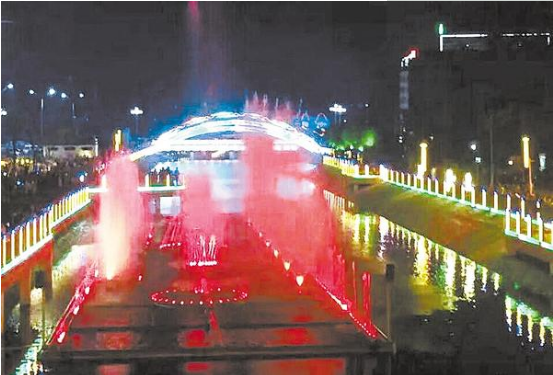 行走在鹿邑縣“五河”兩岸的健身步道上,荷花飄香、沁人心脾。站在天橋上,美景盡收眼底。清澈河水流淌,燈光點點鑲嵌兩岸……流光溢彩的燈光讓老子故里裝扮一新,成了一座名符其實的不夜城。圖①②③為老子故里夜景。