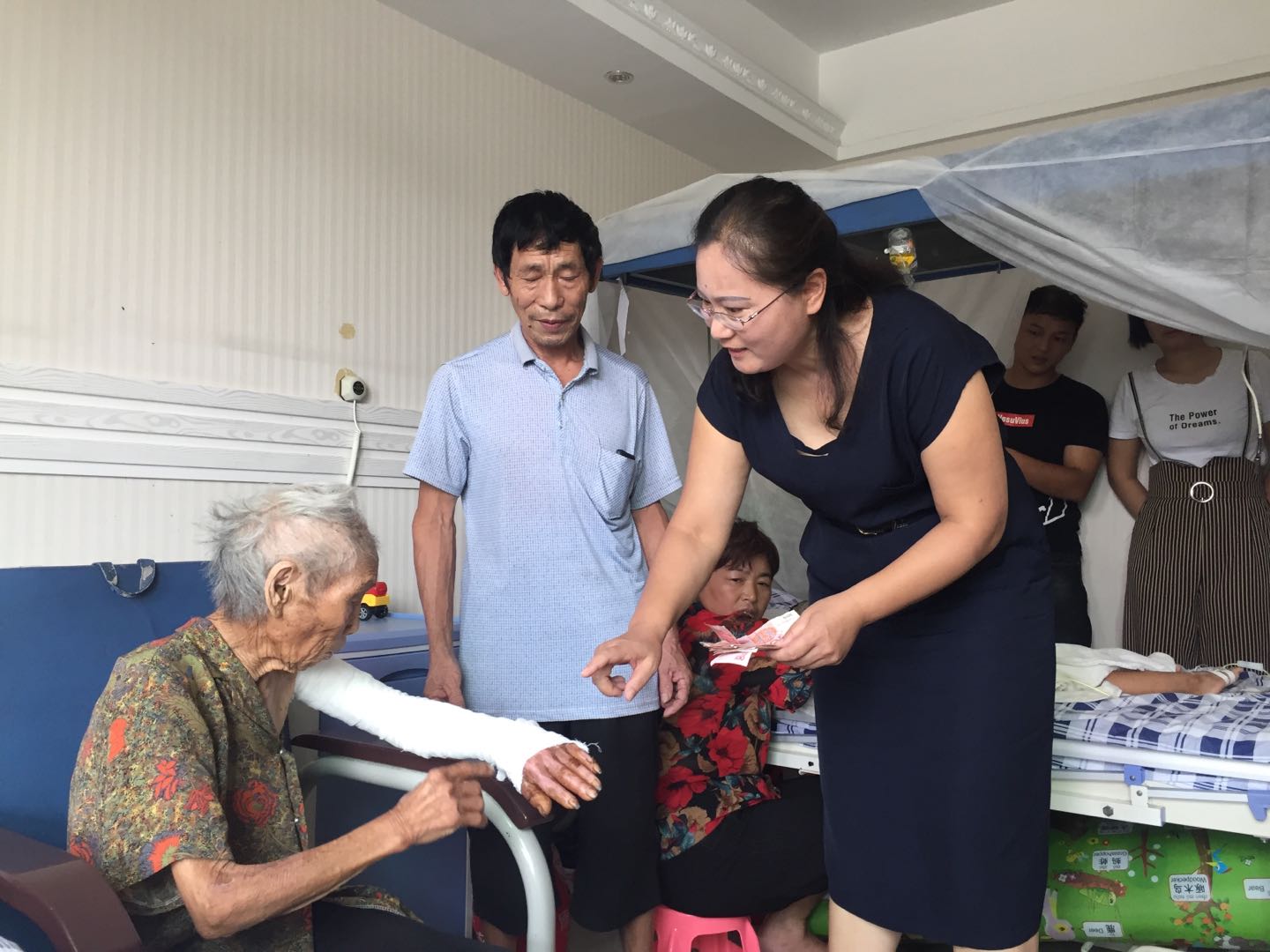 8月26日,駐村第一書記劉春華和村脫貧責(zé)任組組長李小林懷著感激之情,為周口燒傷醫(yī)院送去錦旗兩面。周口燒傷醫(yī)院長張巋說:“幫扶工作是黨的工作,縣、鄉(xiāng)、村干部的真心幫扶,我們醫(yī)院也應(yīng)當(dāng)發(fā)揮扶貧濟(jì)困的作用,盡一些社會責(zé)任,為貧困的群眾做點好事,解決他們的實際困難”,院方當(dāng)即決定贈送給李二俊老太太2000元現(xiàn)金營養(yǎng)費?!?/p>
