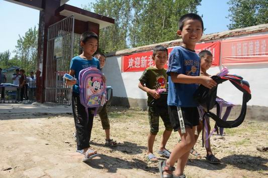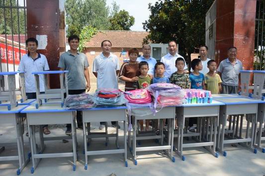 8月27日上午11時(shí)許,商水縣平店鄉(xiāng)大朱莊村小學(xué)大 門(mén)外,突然停放一輛廂式貨車??吹接袉挝凰蛠?lái)了“開(kāi)學(xué)禮”,學(xué)校老師和學(xué)生滿臉興奮 、七手八腳和來(lái)人一塊卸下一些嶄新的課桌凳、書(shū)包文具等學(xué)習(xí)辦公用品。