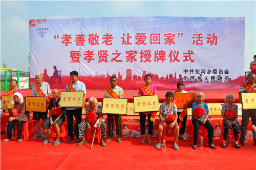 8月30日上午,化河鄉(xiāng)“孝善敬老 讓愛(ài)回家”活動(dòng)暨孝賢之家授牌儀式在該鄉(xiāng)高老村文化廣場(chǎng)舉行??h委常委、統(tǒng)戰(zhàn)部長(zhǎng)李遠(yuǎn)富、副縣長(zhǎng)何海中、縣工會(huì)主席盧紅兵應(yīng)邀出席?;余l(xiāng)黨政班子和近千群眾參加了活動(dòng)儀式。