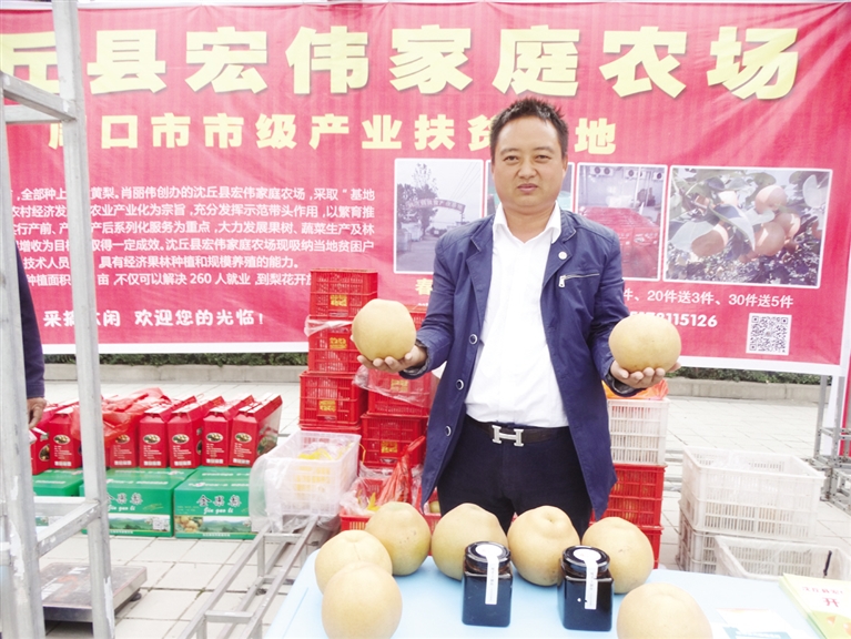 9月22日,沈丘縣舉辦第一個(gè)中國農(nóng)民豐收節(jié)慶?;顒?dòng),來自全縣22個(gè)鄉(xiāng)鎮(zhèn)(辦事處)的35家農(nóng)民種植、養(yǎng)殖合作社和家庭農(nóng)場,展示了槐山藥、黃金梨、冬棗、木瓜、“袖珍”黃瓜、活體蜈蚣、蝎子等120余個(gè)品種。