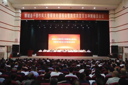 10月7日上午,鄲城縣干部作風(fēng)大整頓第四次查處通報(bào)大會(huì)暨脫貧攻堅(jiān)“百日沖刺”動(dòng)員會(huì)召開。會(huì)議貫徹落實(shí)全省脫貧攻堅(jiān)電視電話會(huì)議和脫貧退出培訓(xùn)會(huì)議精神,聚焦脫貧摘帽目標(biāo)任務(wù)和作風(fēng)問題,分析當(dāng)前形勢(shì),進(jìn)一步動(dòng)員全縣上下統(tǒng)一思想、提振精神,強(qiáng)化責(zé)任、盡銳出戰(zhàn),向脫貧摘帽發(fā)起總攻。縣委書記羅文閣出席會(huì)議并講話,縣長(zhǎng)李全林主持會(huì)議??h領(lǐng)導(dǎo)崔衛(wèi)國(guó)、李建軍、姜永來、侯磊、吳青鋒、王智華、呂振龍、馬超、胡友濤、崔衛(wèi)華、劉輝等參加會(huì)議。