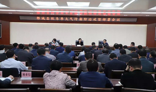 10月20日,鄲城縣召開秋冬季大氣污染防治攻堅部署會議??h委書記羅文閣出席會議并講話,縣長李全林主持會議??h領(lǐng)導崔衛(wèi)國、侯磊、吳青鋒、馬超、胡友濤、肖煒、李廣肅參加會議。