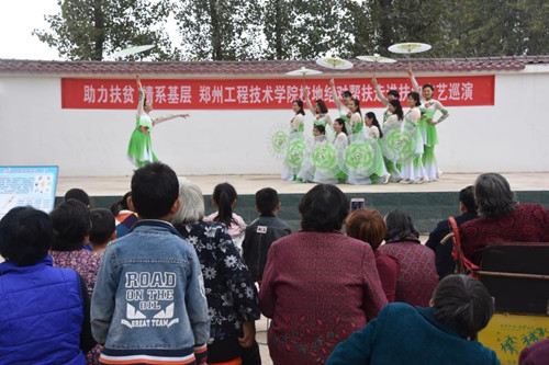 歡快的歌曲唱起來,動人的舞蹈跳起來,熱情的掌聲響起來!10月20至21日,鄭州工程技術(shù)學(xué)院音樂舞蹈學(xué)院黨總支書記魏瑞娟帶著學(xué)院師生走進(jìn)扶溝鄉(xiāng)村,把精彩的文藝演出和普法宣傳送到群眾身邊,為脫貧攻堅加油助力。
