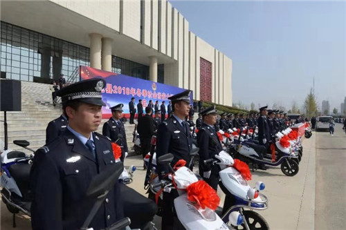 儀式上,縣領(lǐng)導(dǎo)為“百警駐百村”民警代表發(fā)放了第三批巡邏電動車、臺式電腦、平板電腦等 “一村一警”警務(wù)裝備。儀式結(jié)束后,隨著梁建松一聲令下,公安民警統(tǒng)一登車,駛向大街小巷,開展第集中大巡邏。