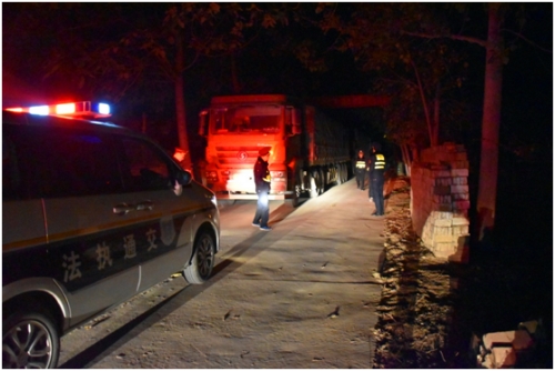 當日22時40分,該所副所長楊春風同志帶領兩個執(zhí)法中隊,對縣區(qū)域內(nèi)重點路段24小時不間斷巡查,在巡查到轉樓鄉(xiāng)通往龍曲鎮(zhèn)的X001線時,發(fā)現(xiàn)4輛大型超限車輛,其中3輛為“百噸王”,1輛為嚴重超載標掛。司機為抗拒檢查,鎖閉車門遠處觀望,我執(zhí)法人員堅守執(zhí)法現(xiàn)場,并及時調用拖車支援,另指派執(zhí)法人員與司機溝通,在動之以情、曉之以理的講解治超政策下,得到了司機的主動配合,把車輛暫扣至超限車輛卸載點。