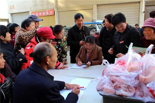 為讓廣大群眾吃上放心肉、質(zhì)優(yōu)價廉肉,李會霞請來縣工商局、縣非公黨工委、縣農(nóng)牧局、縣食藥監(jiān)局領(lǐng)導(dǎo)親自監(jiān)督把關(guān),確保豬肉食品安全。為了擴大活動的影響,她發(fā)放宣傳資料、掛宣傳條幅,還在縣FM91.8電臺滾動播報活動消息,在微信群傳播活動信息,努力把好事、善事辦好,辦到群眾的心坎上。