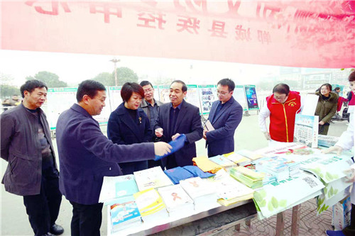 鄲城縣副縣長肖煒,衛(wèi)計委主任付登霄等參加活動。肖煒帶領與會領導同志客串志愿者,向群眾發(fā)放艾防宣傳材料,并慰問一線艾防工作人員。