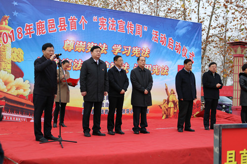 今年12月4日是第五個(gè)國(guó)家憲法日,也是我國(guó)第一個(gè)“憲法宣傳周”。當(dāng)天一大早,鹿邑縣在紫氣大道西段老君新苑法治文化主題公園舉行集中宣傳活動(dòng)??h領(lǐng)導(dǎo)梁建松、李國(guó)際、雷申、侯自峰、武衛(wèi)東、王曉征等出席活動(dòng)啟動(dòng)儀式,縣法院、檢察院主要負(fù)責(zé)人和來(lái)自全縣縣直各局委、鄉(xiāng)鎮(zhèn)的300余名干部群眾代表參加啟動(dòng)儀式。