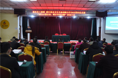 12月10日,商水縣工商聯(lián)、建行商水分行簽署全面戰(zhàn)略合作協(xié)議,共同開展“助力小微企業(yè)、踐行普惠金融”主題宣講活動(dòng)??h委常委、統(tǒng)戰(zhàn)部長(zhǎng)李遠(yuǎn)富,縣政協(xié)副主席、工商聯(lián)主席彭發(fā)光,建行周口分行副行長(zhǎng)邵崗等領(lǐng)導(dǎo)出席,全縣100多家中小微企業(yè)參加活動(dòng)。