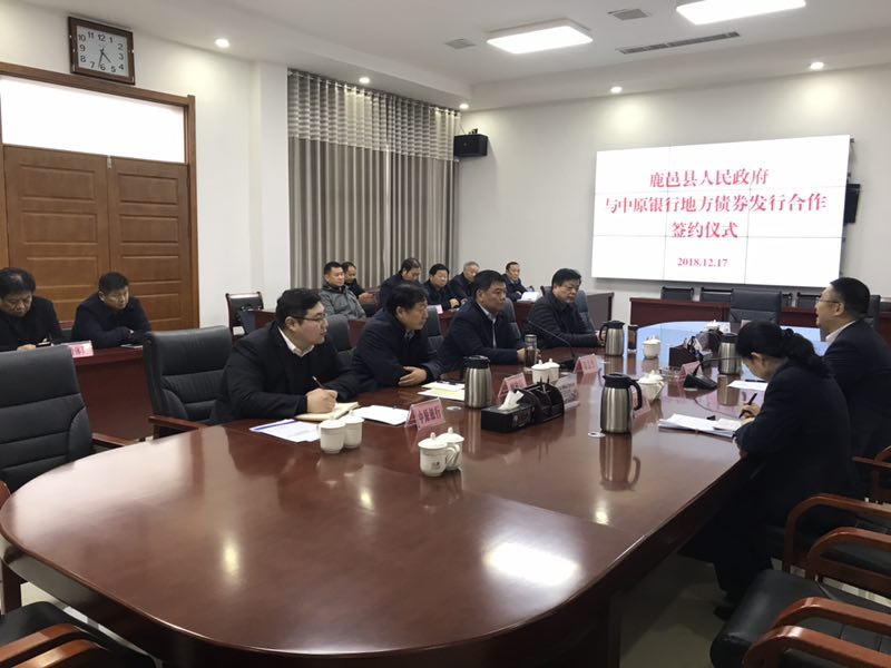 12月17日,鹿邑縣人民政府與中原銀行地方債券發(fā)行合作簽約儀式舉行??h委常委、常務(wù)副縣長陸志杰,老子學(xué)院黨組副書記、交通局局長王初立,中原銀行周口分行黨委副書記、副行長周朝陽出席簽約儀式??h財(cái)政局、教體局、住建局、林業(yè)局、發(fā)改委、老子文化產(chǎn)業(yè)園及投資公司等相關(guān)單位負(fù)責(zé)同志參加會(huì)議。