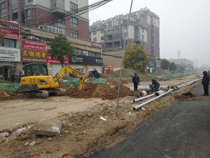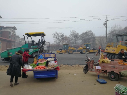 記者今日走訪漢陽(yáng)路中段(穎河路-建設(shè)路)看到,目前該路段機(jī)動(dòng)車道已鋪上黑色的混凝土物質(zhì),人行道則是壓實(shí)過(guò)的土路。壓路機(jī)等設(shè)備停靠在道路兩頭,并未啟動(dòng),有兩臺(tái)挖掘機(jī)及數(shù)十名工人在人行道上,鋪設(shè)下水道。施工路段內(nèi),有不少菜販在沿街叫賣。