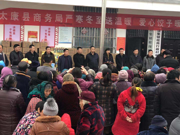 12月21日下午,冬至前夕,太康縣副縣長喬偉、縣商務(wù)局局長李曉紅,清集鎮(zhèn)黨委書記吳文靜,帶著對貧困群眾的關(guān)心、關(guān)愛,到太康縣清集鎮(zhèn)張子影行政村、桂崗行政村開展嚴(yán)寒冬至送溫暖,愛心餃子暖人心扶貧慰問活動。