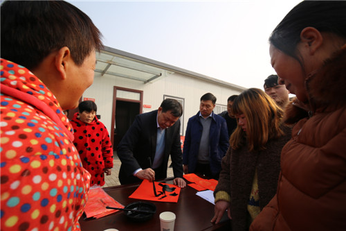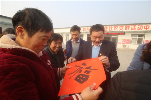 依然是在年末歲初的冬日暖陽(yáng)里,12月20日中午1時(shí)30分,區(qū)委書(shū)記李宗喜再次來(lái)到川匯區(qū)小橋辦事處興業(yè)社區(qū),和10名書(shū)法家一起,現(xiàn)場(chǎng)為社區(qū)居民寫(xiě)春聯(lián)送祝福。