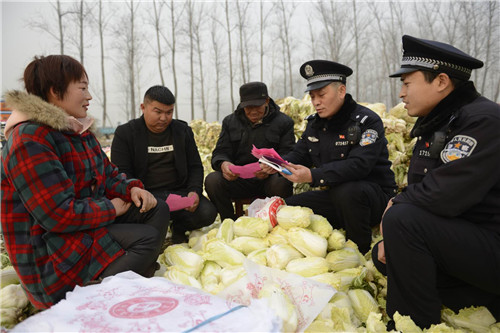 歲末年初正是電信詐騙、入室盜竊等各類(lèi)侵財(cái)案件高發(fā)期。為提高群眾的治安防范意識(shí),連日來(lái),扶溝縣公安局呂潭派出所民警來(lái)到田間地頭,為農(nóng)戶講解治安防范知識(shí),幫助農(nóng)戶提高識(shí)別電信詐騙技能。圖為12月25日,民警正在為菜農(nóng)解答電信詐騙防范疑難問(wèn)題。
